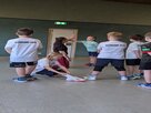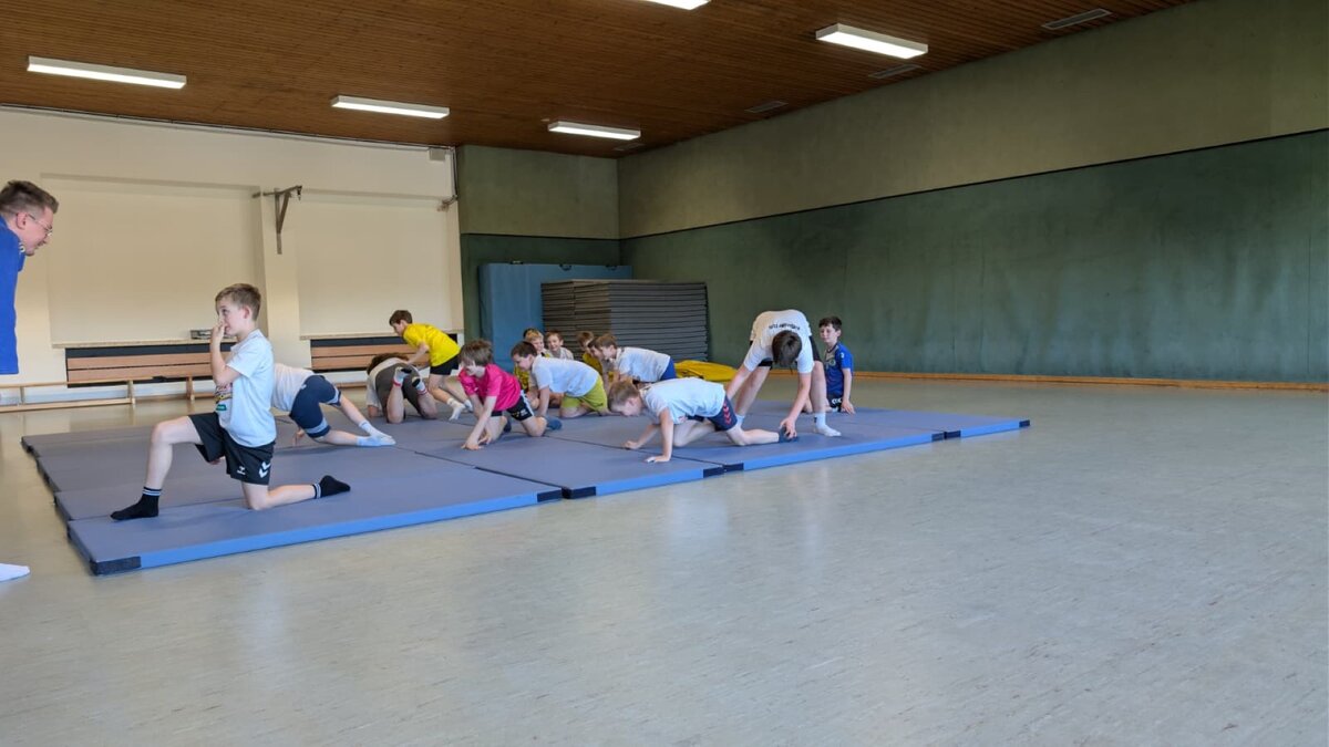 Ein besonderes Highlight war die Einheit mit Maurice Nuckelt, erfahrener Judoka. In seinen Einheiten vermittelte er den Kindern gezielt grundlegende Falltechniken, die im Handball eine wichtige Rolle spielen – insbesondere zur Vermeidung von Verletzungen bei Stürzen und Zweikampfsituationen. Mit viel Fachwissen und praxisnahen Übungen zeigte er den Teilnehmern, wie man richtig fällt, sich abrollt und Bewegungen kontrolliert abfedert. Die Kinder waren mit großer Konzentration und Begeisterung dabei und konnten wertvolle Grundlagen für ein sicheres und selbstbewusstes Auftreten auf dem Spielfeld mitnehmen.